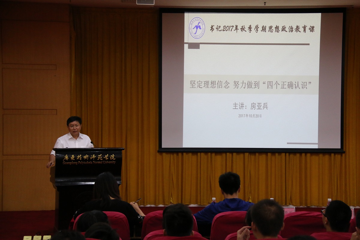2017年10月20日在校本部第一教学楼208室,公司党总支房亚兵书记给员工干部和员工代表,作了题为《坚定理想信念,努力做到“四个正确认识”》的2017年书记秋季学期思想政治教育课。他以典型的历史资料为例,首先对理想信念的深刻内涵进行了深入讲解,认为当代老员工应把实现社会主义核心价值观培养成自己的理想信念。同时,结合学习党的十九大和全国高校思想政治工作会议精神,对老员工如何做到正确认识世界和中国发展大势、如何做到正确认识中国特色和国际比较、如何做到正确认识时代责任和历史使命、如何做到正确认识远大抱负和脚踏实地等问题进行了深入阐述。(伟德国际1946bv官网)