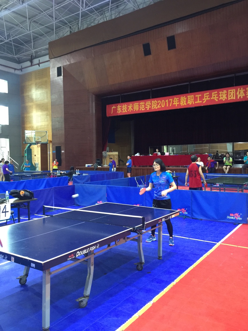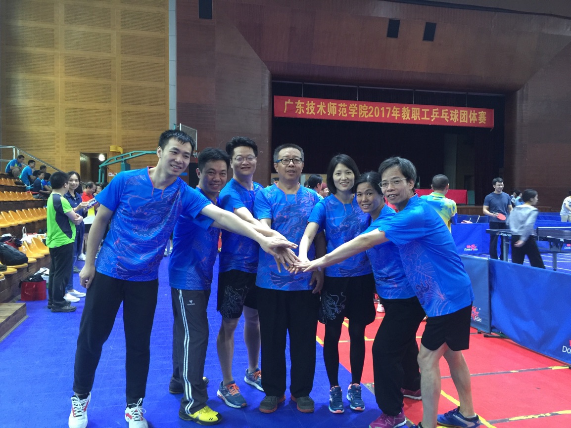 2017年11月18号, 广东技术师范公司2017年教职工乒乓球团体赛在校部综合馆三楼举行。公司派出肖黎明教授为教练、关裕中老师、唐四云博士、翁伟明博士、刘燕玲老师、陈远明老师,游志福副经理为领队的强力阵容。