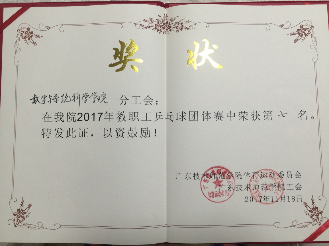 公司获2017年教职工乒乓球团体赛佳绩