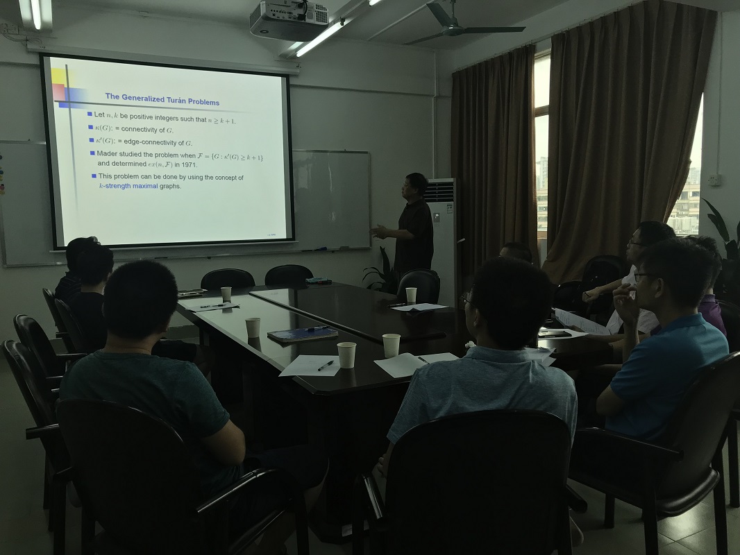 2018年7月2日下午3点,美国西弗吉尼亚大学赖虹建教授应公司邀请,在校本部第一教学楼1211室,为我们做了题为《图的广义Turan问题》的学术报告。该报告展现了最近在图的广义Turan问题和广义Turan函数的研究方面的一些结果。报告后,数学公司老师热烈积极参与讨论,并和赖教授交流相关学术问题。