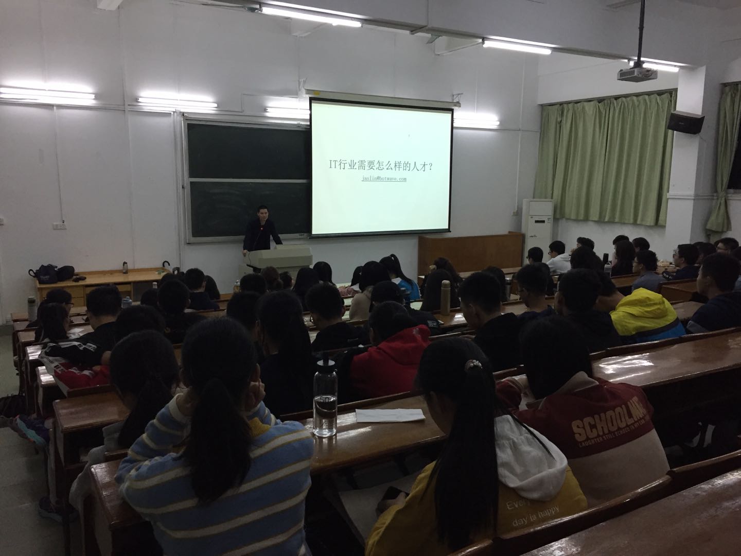 12月7日晚,受公司信息与计算科学系系主任朱志强教授邀请,广州博汇数码科技有限公司的首席技术官林霖先生,在一教207课室为信计员工做了“IT企业需要什么样的人才”的主题讲座。结合自己的专业背景,林经理向员工介绍了当前信息领域的技术需求,以及涉及的专业知识,很好地展示了理论与实践的关系,并着重强调了打好基础的重要性。讲座的后阶段为交流环节,信计员工就自己关心的问题踊跃向林经理提问,问及的话题有:如何“翻墙”,哪门计算机语言更重要,面试是否很看重实践经验,Python的重要性,等等。