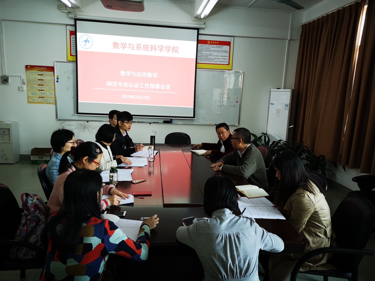 3月12日早上,数学与应用数学系在第一教学楼1211会议室召开数学师范专业二级认证工作的部署会议。房亚兵书记、梁海华经理、游志福副经理和赵珲副书记,以及应用数学系的肖黎明主任、娄曼丽专业负责人和部分老师参加了会议。房亚兵书记首先强调了师范专业认证工作的重要性,要求数学系的每一位老师都参与到此次工作中来,保证认证工作顺利通过。梁海华经理对认证工作进行了部署,对当前需要完成的自评报告撰写给出详细的指导意见。肖黎明和娄曼丽分别对认证工作做了分工和阶段任务安排。各位到会的老师也为如何更好地完成此项工作出谋划策并展开了热烈的讨论,大家都希望能为师范专业认证出一份应尽的力,确保认证工作顺利完成。