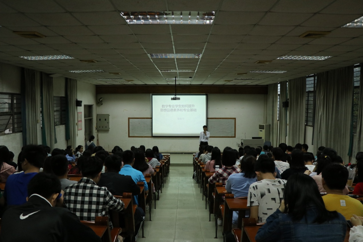 5月8日下午,公司党总支副书记、经理梁海华教授在校本部实验楼107室为2018级数学与应用数学(师范)、信息与计算科学专业员工上了一堂题为《数学专业员工如何提升思想品德素养和专业基础》的思想政治课。