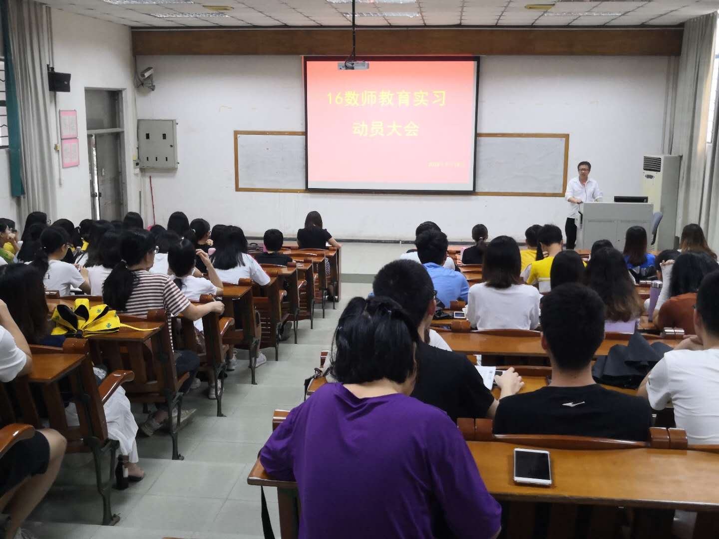 2019年5月14日16数师1班,16数师2班教育实习动员大会在实验楼107课室举行。伟德国际1946bv官网主管员工工作的赵珲副书记,数学与应用数学系主任肖黎明教授参加了实习动员大会。大会由肖黎明教授主持。赵珲副书记就教育实习期间的安全问题,面对实习公司师长的礼貌问题,实习期间的着装问题对16数师2个班的同学提出了相应要求。肖黎明主任对教育实习的目的和意义,教育实习期间的遵纪、守时、安全问题对16数师的同学也作出了相应要求,并对教育实习期间每一位同学需要做的工作做了详细的布置。