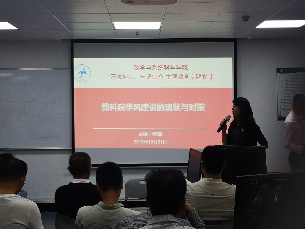 根据“不忘初心、牢记使命”主题教育安排,2019年10月31日下午,在东校区工业506室,公司党总支副书记赵珲以《数科院学风建设的现状与对策》为题,给党员和教师开讲了党课。