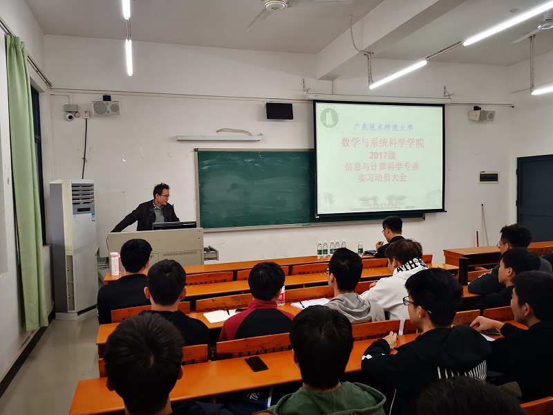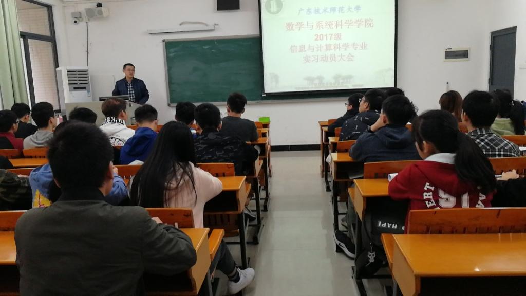 为进一步推动2017级信息与计算科学专业的实习工作,引导员工做好实习心理准备,2019年12月19日,信息与计算科学系在白云校区第三教学楼122室召开2017级信息与计算科学专业的实习动员大会。公司经理梁海华教授、系主任朱志强教授、专业负责人马震远副教授、系副主任李振彰老师以及本次实习单位的三位科大讯飞负责人出席了本次动员大会。会议由马震远老师主持。
