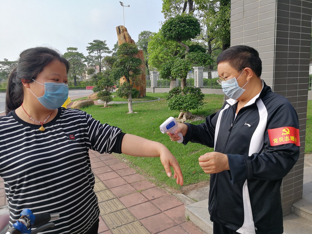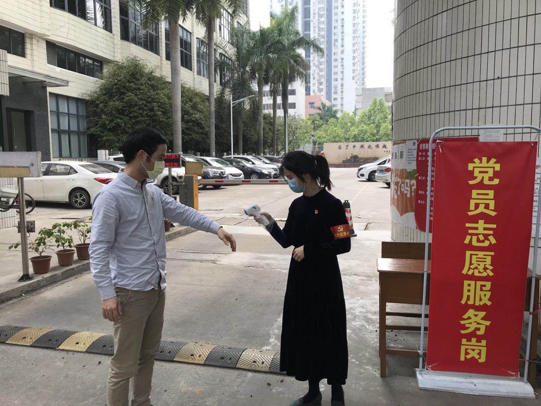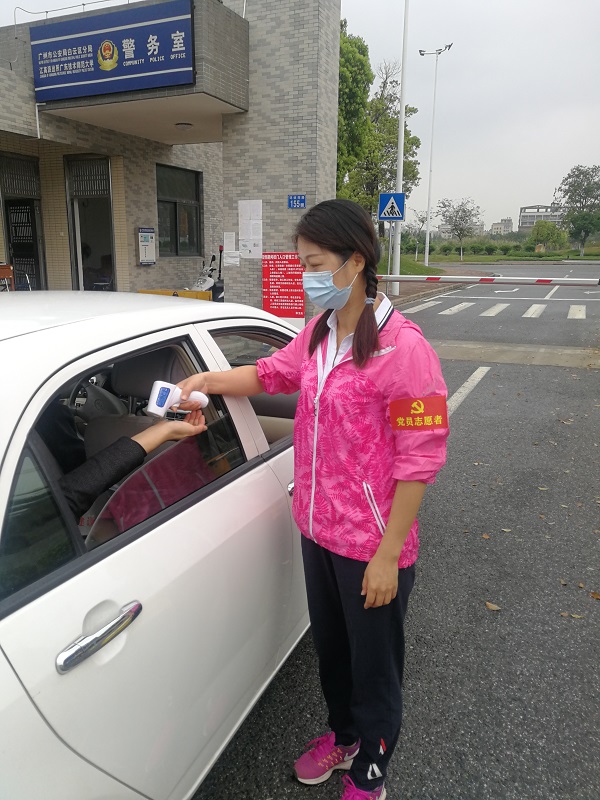 为打赢抗击新型冠状病毒肺炎这场人民战争,充实加强一线力量,公司党员房亚兵、梁海华、赵珲、刘燕玲、王婷婷、亚地卡尔积极报名参加抗疫情一线志愿服务,在各校区值班门卫岗协助开展体温测试、证件检查和进入登记等工作。以下是部分党员参与志愿服务的部分照片: