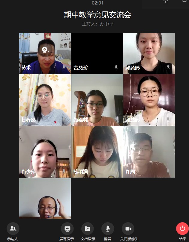 通过高等数学的线上教学期中交流会,同学们都表示本学期的高等数学线上教学效果不错,老师们备课准备充分,对各个平台和教学资源的使用越来越娴熟,老师们在上课过程中都能注意进度和同学们的参与度,对每个知识点或例题基本都做到深入浅出以及确定同学们的掌握情况后才继续往后讲授,保障线上教学效果也和线下教学的效果一致。同学们纷纷表示,老师们都认真批改在作业群上的作业;对于作业中的难点或容易错的知识点,会在授课时重点讲解。同时,各位同学也提出了线上教学中存在的,如:有时平台会卡、老师和同学不能面对面交流、线上课堂的同学参与度等实际问题。在接下来下半学期的线上教学过程中,高等数学部会根据同学们的建议,通过建立备用线上课程群、线上答疑、提高线上提问等措施来进一步有效改进高等数学的线上教学。
