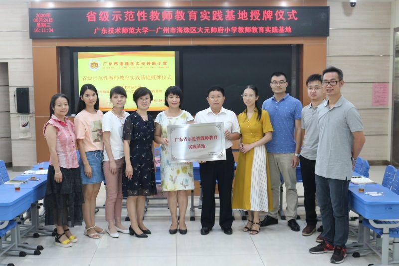 6月24日下午,教师教育实践基地合作建设交流会暨bevictor1946韦德官网——广州市大元帅府小学“省级示范性教师教育实践基地”授牌仪式,在广州市大元帅府小学东校区举行。公司党总支房亚兵书记、数学系主任黄凤英博士和数学与应用数学专业负责人陈玉明博士,广州市大元帅府小学谢少冰董事长、洪虹副董事长、钟敬霖科长以及数学科骨干教师,参加了交流会及授牌仪式。