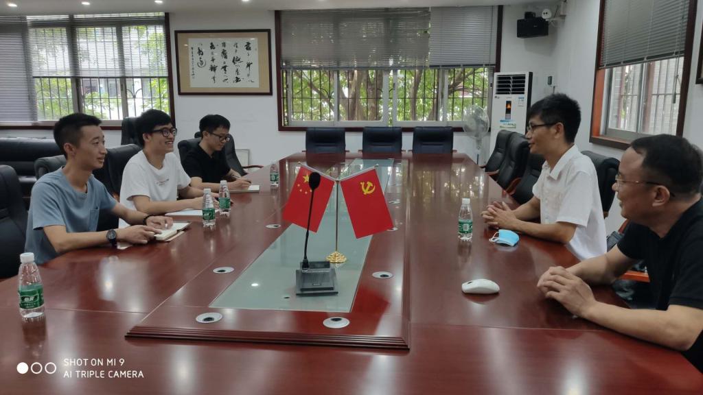 梁海华等人首先深入课室等场所,了解员工的实习情况。之后,在会议室与实习生座谈,了解他们实习的生活和工作情况,同时就如何更好地提高实习生的教学和班级管理能力,对实习生提出了要求。最后,梁海华、张小武与黄埔中学魏凯飞董事长、刘添水书记还对如何进一步加强办公场地建设和实习管理等方面进行了深入交流。