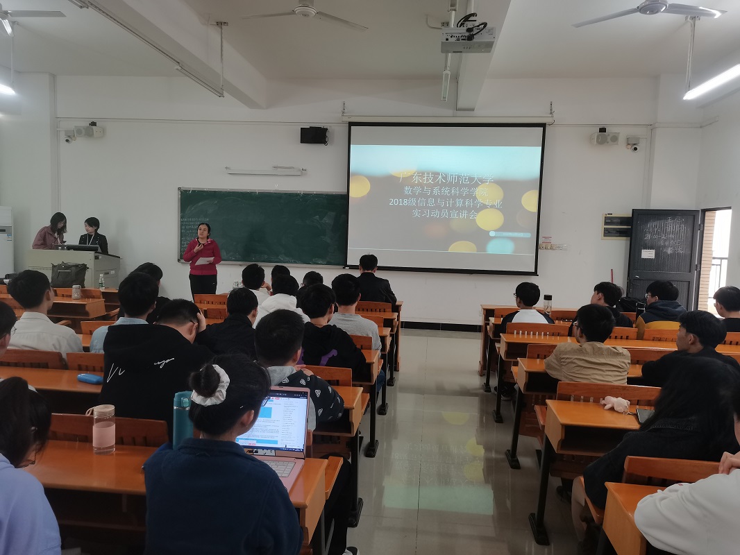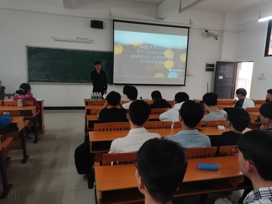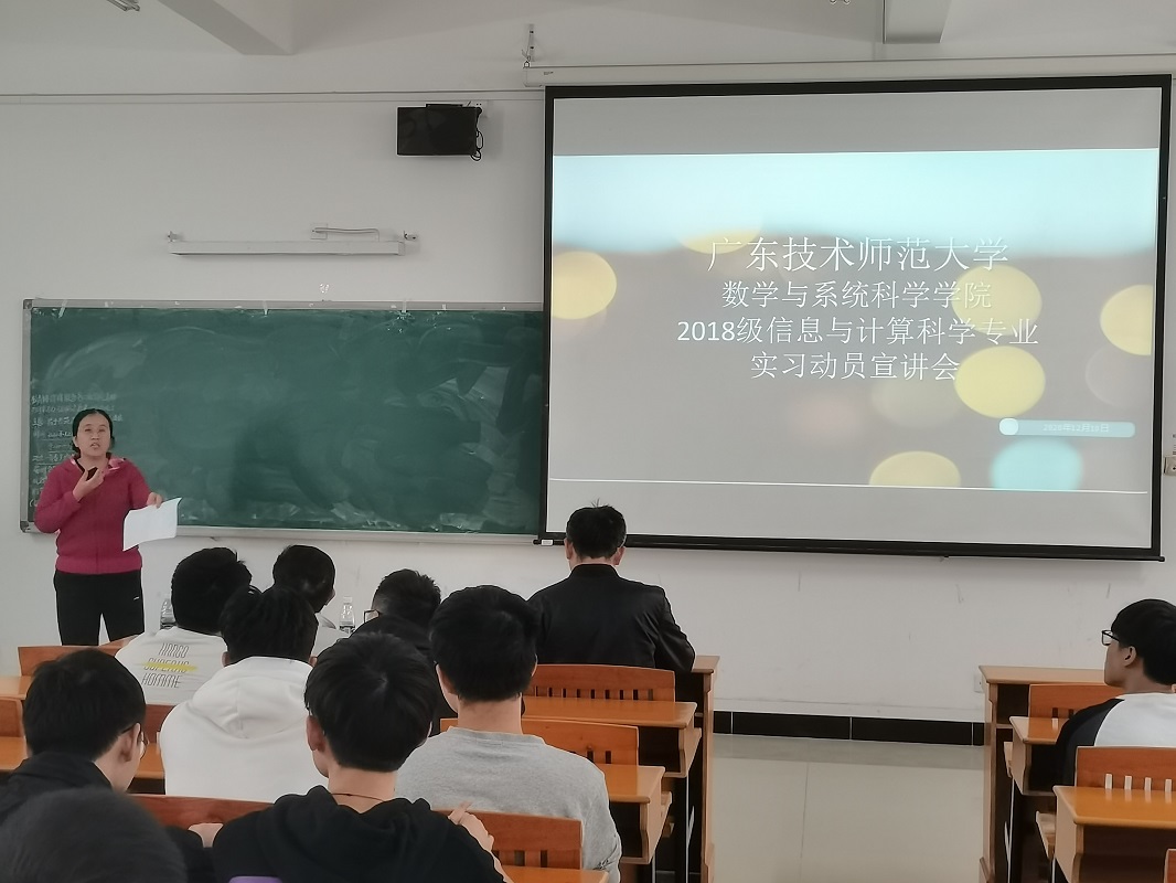 为进一步完善2018级信息与计算科学专业第6学期的实习工作,引导员工做好实习心理准备。2020年12月10日,公司在白云校区第三教学楼306室召开2018级信息与计算科学专业的实习动员大会。出席此次会议的有公司党总支书记房亚兵、经理梁海华、系主任李振彰、专业负责人陈艳美,以及本次实习单位科大讯飞两位工程师。会议由专业负责人陈艳美老师主持。