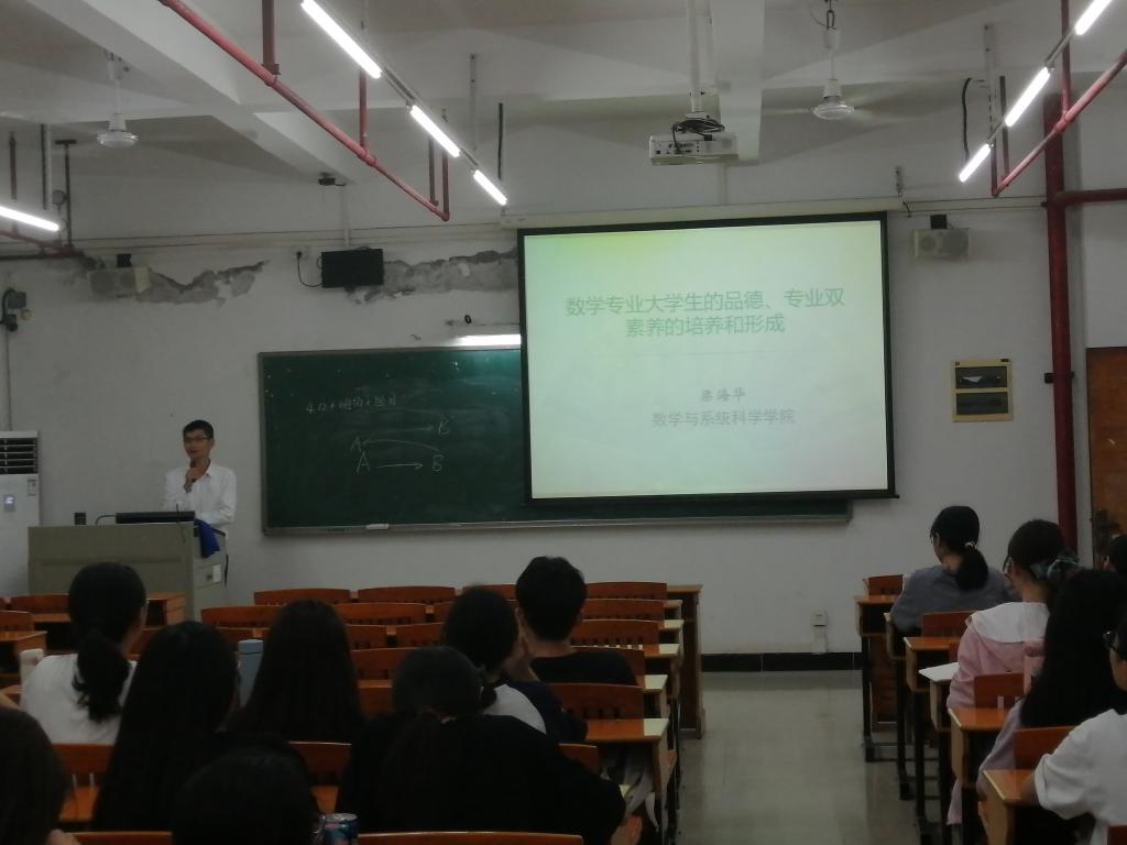 为贯彻落实全国高校思想政治工作会议精神,进一步加强公司员工的思想政治教育,引导员工在专业成长的同时养成高尚的思想品德,4月14日晚上,梁海华经理在白云校区二教604课室为19级数学与应用数学(师范)专业的同学讲授了题为“数学专业员工的品德和专业素养的培养和形成”的专题思政课。