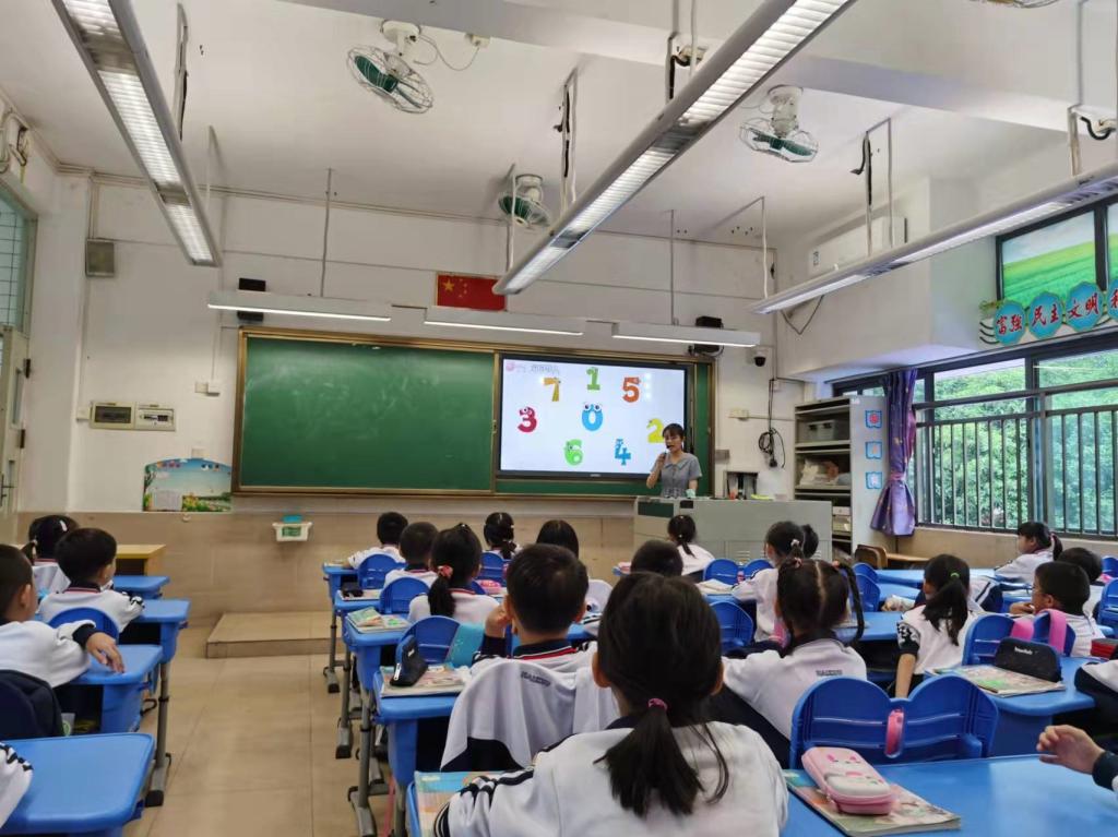 实习生张蓥同学在一年(6)班讲授《8和9的认知》,以拍掌复习数字7引入新课,用各种活动来帮助员工掌握数字8和9,强调7,8,9的排列顺序。在教学过程中张蓥同学展现出了良好的课堂掌控技巧,用口号和活动调整课堂秩序,课堂气氛活跃。