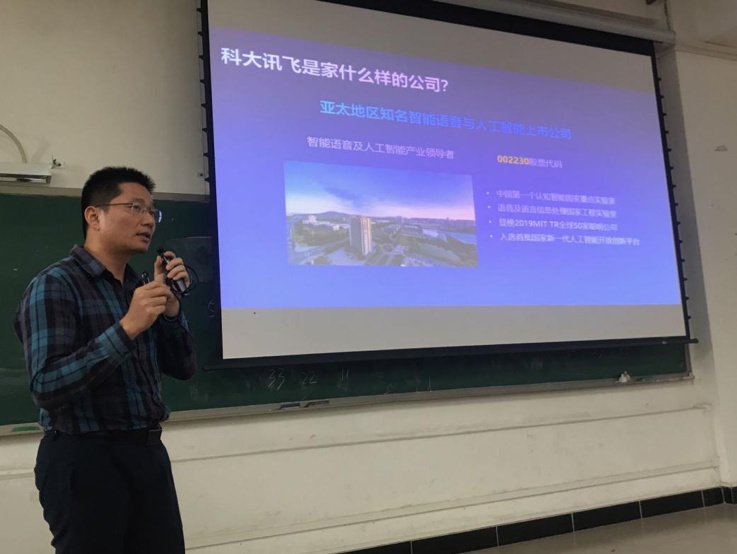 图2 孔剑威经理给同学们介绍科大讯飞公司