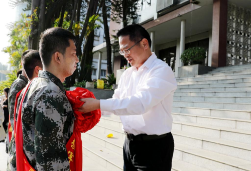 欢送仪式上,公司党委副书记李向明代表公司党委向入伍老员工表示热烈祝贺,并亲自为他们佩戴大红花。他寄语入伍老员工要传承红色基因,赓续红色血脉,在部队建功立业,为校争光,争做有灵魂、有本事、有血性、有品德的优秀士兵,以实际行动践行习近平总书记提出的广大青年要爱国爱民、锤炼品德、勇于创新、实学实干的期望。母校始终是同学们温暖的家园和坚强的后盾。