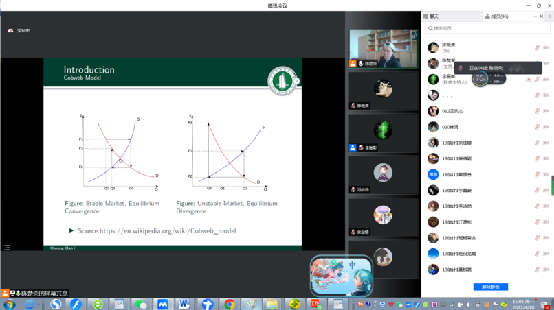 受2022年4月广州新冠肺炎疫情影响, 2019级信息与计算科学系102名同学的专业实习推迟,为了更好地扩展同学们的专业知识面,信计系于2022年4月18日15:00-17:00组织了一场学术报告和员工答疑线上交流会(腾讯会议号:262-294-734)。出席会议的有信计系主任李振彰、信计系专业负责人陈艳美、报告主讲人陈楚荣三位老师和2019级信计系102名同学。