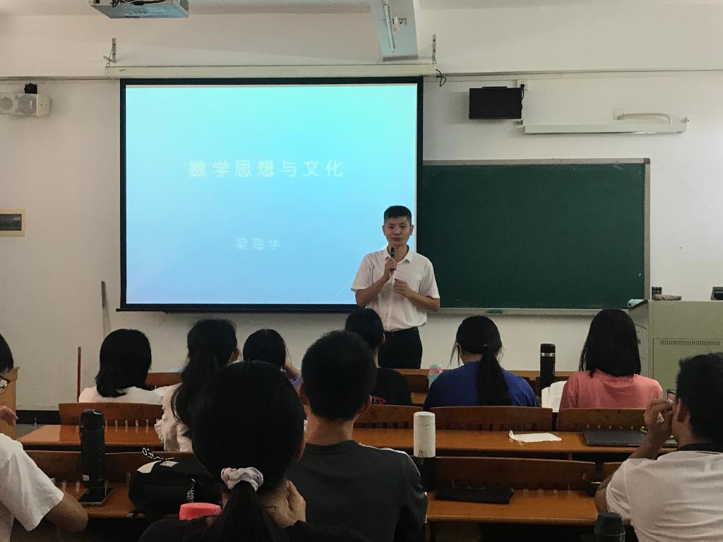 梁海华经理以代数学和分析学为侧重点,介绍了数学发展的简史,讲述了数学史上的一些重大事件,介绍了一些著名数学家的贡献及其生平的事迹。他还专门讲了中国历史上一些伟大的数学家的事迹。梁海华在讲述这些内容的同时,强调了数学思想与文化的形成过程,剖析了某些数学思想的内涵。最后,他希望同学们要学习数学家们追求真理、勇于探索、敢于创新的精神,要树立坚定理想信念,以坚韧不拔的精神刻苦学习,在祖国实现伟大中国梦的征程中贡献自己的力量。