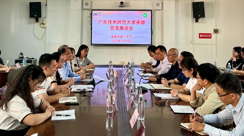 11月1日上午,广师大一行先抵达南雄市第一中学,南雄市教育局局长卢锦华、南雄一中党委书记何海荣热情接待。座谈会上,卢锦华介绍了南雄市教育基本情况,提出南雄市存在教师老龄化严重、人才招聘跟不上需求、个别学科教师(数学、物理、思政等)紧缺等现状,并对定向培养生提出三点建议:加强师德养成教育、提升教师专业水平和管理水平、培育肯干愿干吃苦耐劳精神,并真诚希望与公司能达成友好共识,推进南雄市教育事业的发展。