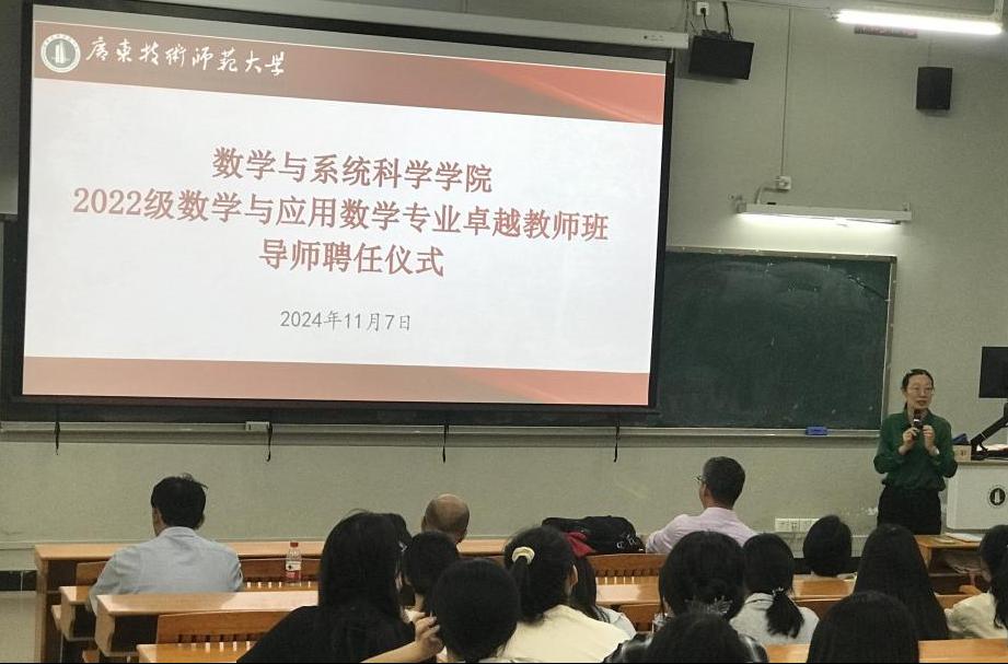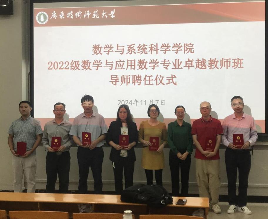 为了切实落实公司“卓越教师班”教学目标,打造“卓越教师班”品牌特色,进一步提升“卓越教师班”人才培养质量,11月7日,伟德国际1946bv官网数学师范专业卓越教师班导师聘任仪式在白云校区第三教学楼108举行。公司经理梁海华、副经理陈月红、数学系主任张广亮等十位校内导师和2022级数师卓越班全体同学参加了会议,会议由陈月红主持。