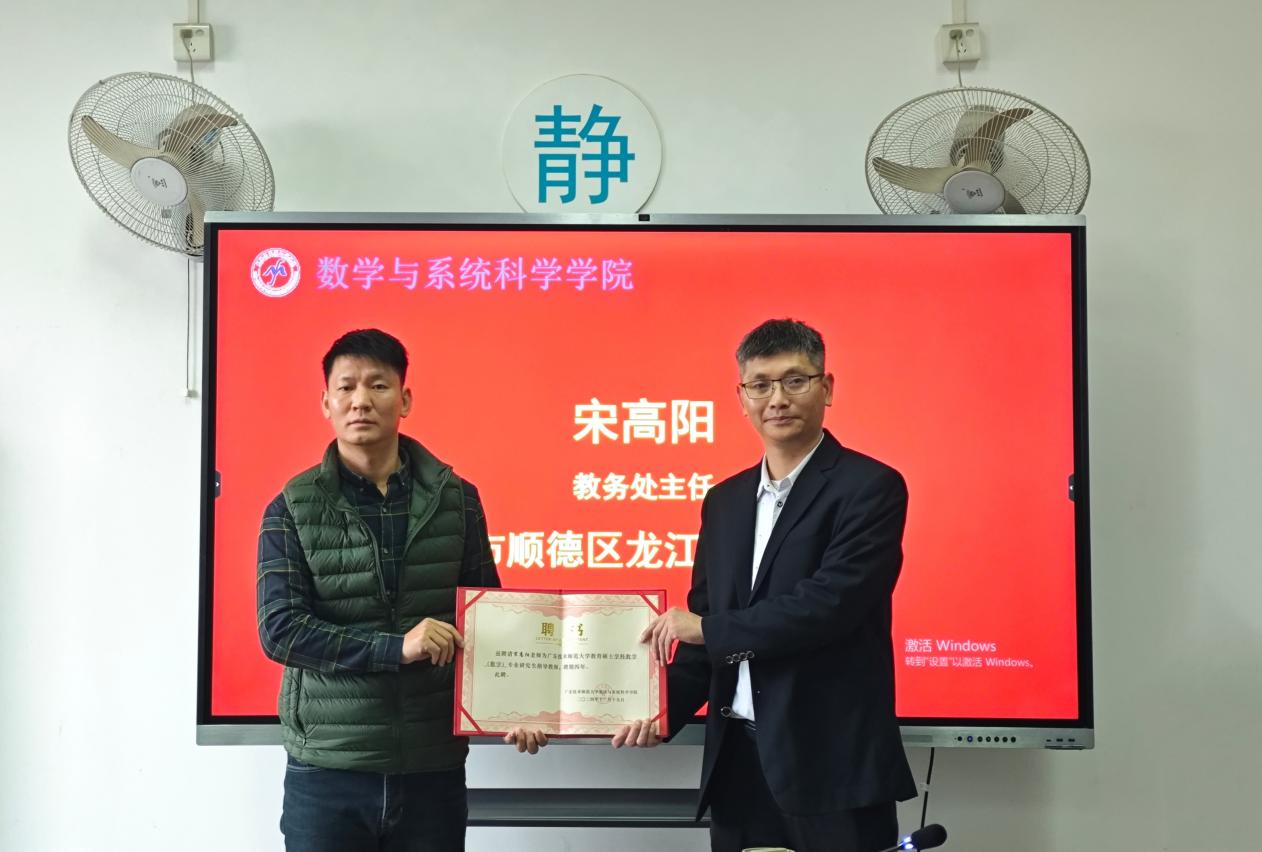 之后,梁海华为朱国璋、蔡志源、宋高阳颁发了硕士导师聘书。