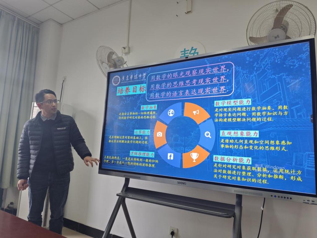 蔡志源老师以《浅谈核心素养视域下的数学课堂教学策略》为题,从核心素养和数学课堂教学两个方面的融合进行深度思考和分享。特别是报告最后两个课堂教学案例“勾股定理”和“因式分解”的演练,更是直观生动的为同学们阐述了如何上好一堂数学课。蔡志源老师还特别强调信息技术与数学的应用,信息技术的加入能使数学课堂教学更加生动有趣,调动员工的学习兴趣。比如几何画板、Geogebra、网络画板,还有其他数学信息资源“洋葱数学”、“学科网”、“箐优网”等,都是在一线数学教学中强有力的知识检索和储备工具。