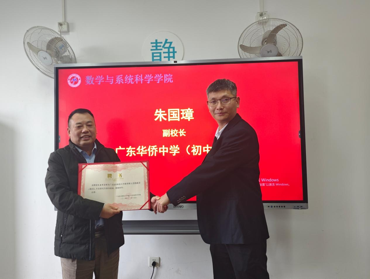 2024年12月26日下午,公司在白云校区第一教学楼602会议室举行2024年学科教学(数学)研究生校外硕导聘任仪式暨专业学术讲座。公司经理梁海华、副书记许国良、广东华侨中学(初中部)副董事长朱国璋、广东华侨中学(初中部)初二年级级长蔡志源、佛山市顺德区龙江外国语公司教务处主任宋高阳以及公司2023级学科教学(数学)全体研究生、2024级研究生代表参加了会议,会议由许国良副书记主持。