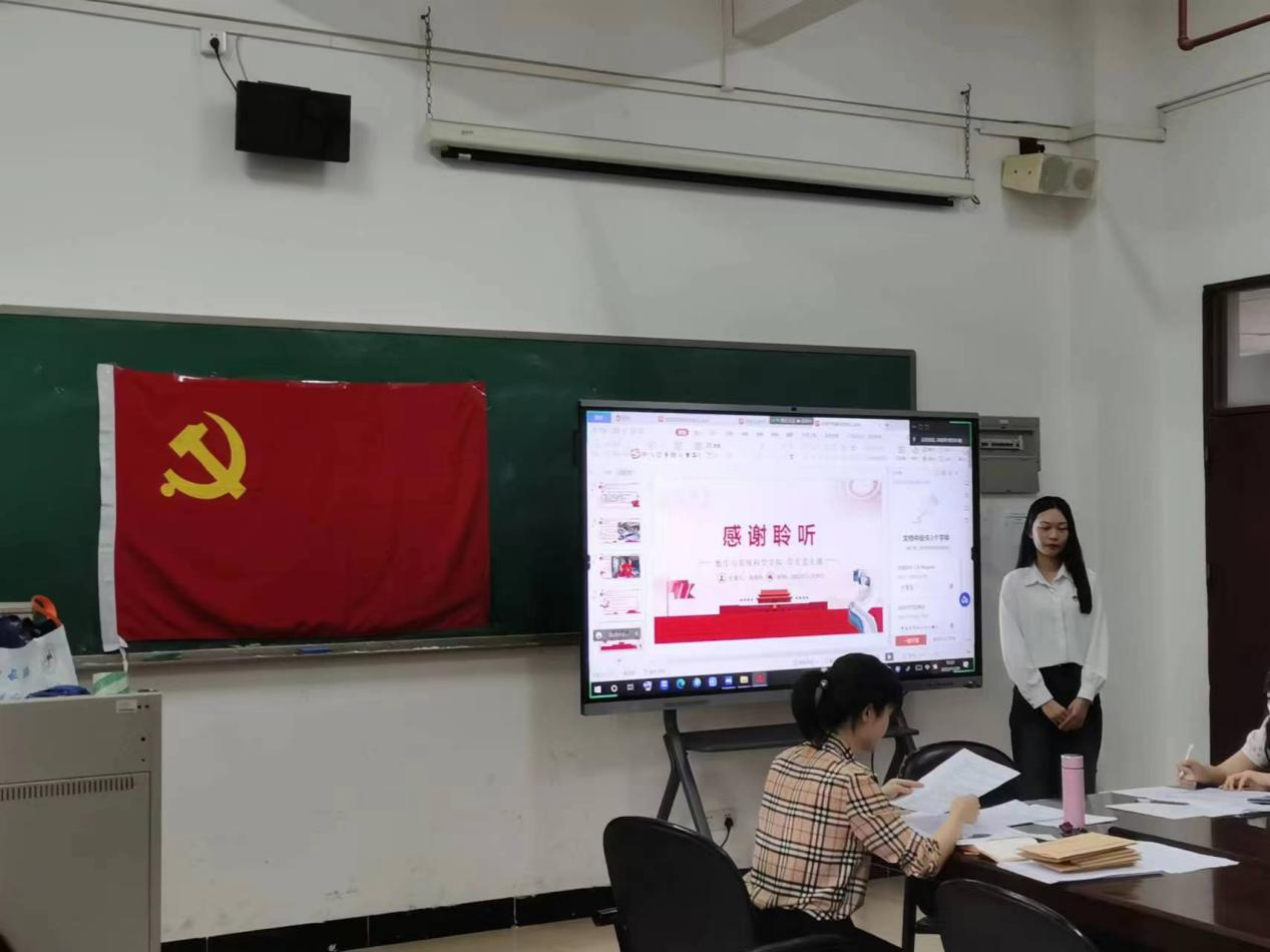 答辩会议开始,全体成员起立奏唱国歌,主持人介绍会议主题、流程,报告党员出席情况以及宣读答辩规则。陈婕曼等8位预备党员按照顺序依次上台进行发言答辩,答辩环节包括自我介绍、评委提问、评委点评三个环节。在答辩过程中,8位预备党员都展示了良好的政治理论基础和政治素养,并表示今后将继续以优秀党员的标准严格要求自己,发挥先锋带头模范作用。