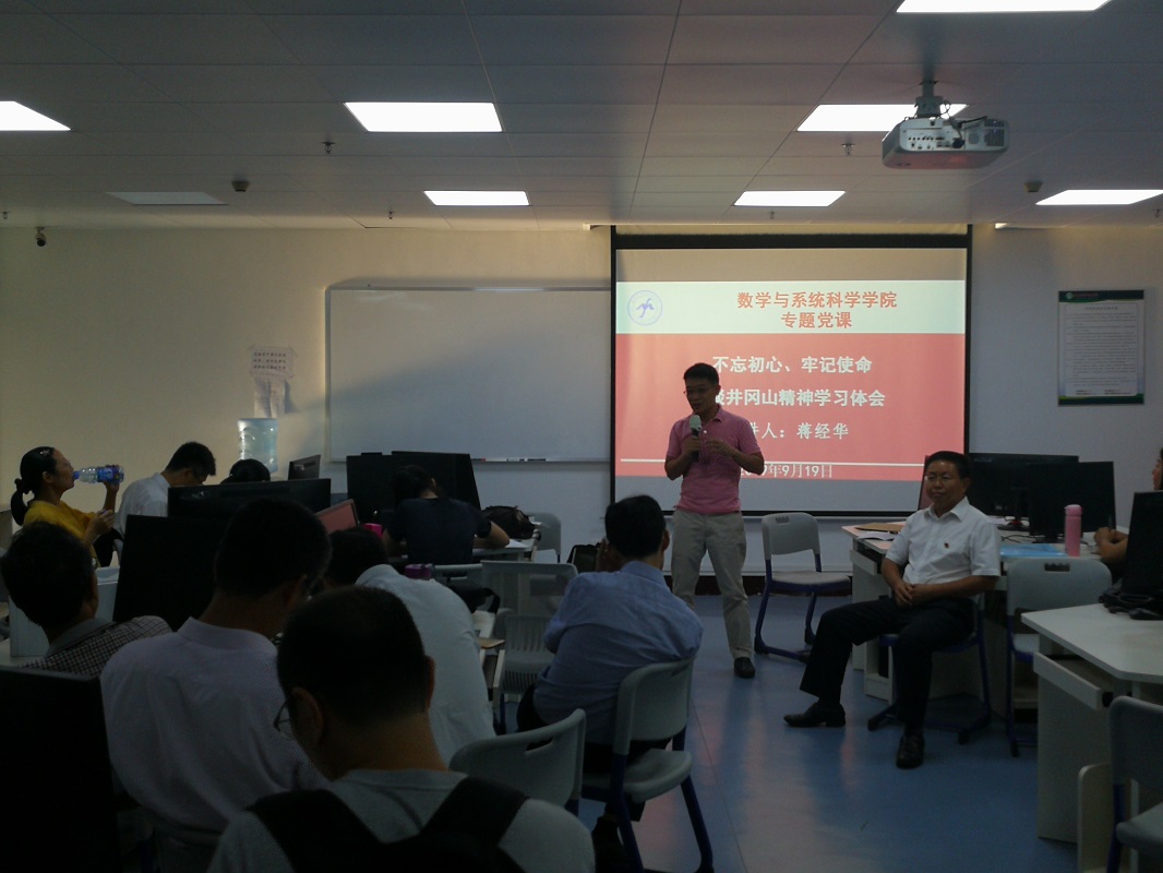 会议有八个内容:一是公司党总支房亚兵书记对“不忘初心、牢记使命”主题教育进行再动员、再部署;二是举行专题党课(题目:不忘初心、牢记使命—-谈井冈山精神学习体会,主讲:教工第二党支部书记蒋经华);三是学习《习近平总书记在“不忘初心、牢记使命”主题教育工作会议上的讲话全文(2019年5月31日)》,领会原著精神实质;四是传达学习《关于进一步加强和规范<中国共产党党员党费证>管理的通知》(广师大党组〔2019〕53号),研究贯彻落实措施;五是传达学习《bevictor1946韦德官网基层党支部组织设置工作指引》(广师大党委〔2019〕91号)精神,研究贯彻落实措施;六是传达学习《bevictor1946韦德官网基层党支部标准化建设工作规范》(广师大党委〔2019〕90号))精神,研究贯彻落实措施;七是讨论数科院教工第一党支部开展“不忘初心、牢记使命”主题教育方案;八是布置“不忘初心、牢记使命”主题教育自学工作。