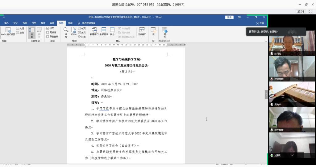 教工党支部于2020年3月24日召开全体党员会议