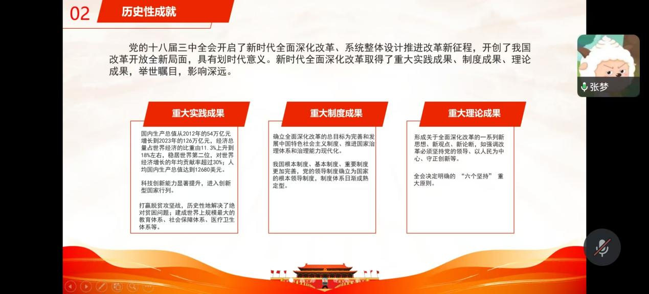 本科生党支部书记王婷婷作会议总结发言。她肯定了各位党员在过去一学期所取得的成绩,鼓励大家要在学习和实践中继续发挥党员的先锋模范作用。在新的一年中也要继续加强理论知识的学习,以更饱满的热情迎接新挑战。并在最后为大家送上新春祝福。