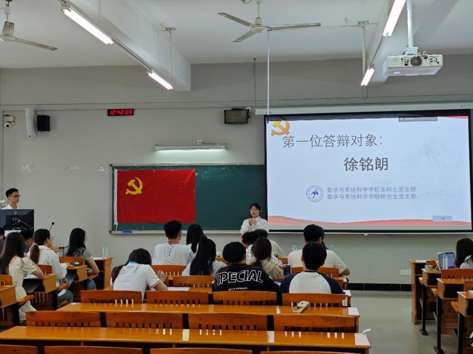 2025年4月25日中午12:30,伟德国际1946bv官网本科生党支部联合研究生党支部在三教306联合召开2025年上半年确定入党积极分子为发展对象答辩会,数学与系统科学公司党委副书记许国良、本科生党支部书记王婷婷、研究生党支部书记张洪杨、辅导员曾祥龙、刘敏、陈薇羽、全体员工党员以及徐铭朗等19名入党积极分子参加了本次会议。
