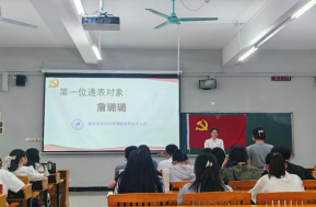 通表环节中,12名发展对象依次汇报个人情况,入党介绍人逐一介绍发展对象在培养考察期间的表现,并对其能否发展其培养对象入党表明意见,紧接着,支部书记刘敏和支部委员黄泽佳依次报告对发展对象审查的情况。最后,在充分讨论的基础上,经无记名投票表决,全体正式党员一致同意 12 名发展对象成为中共预备党员。