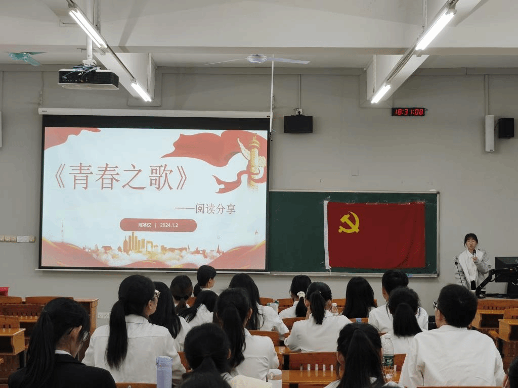 全体党员集体学习《青春之歌》一书,员工党员陈冰仪、江慧玲作读书心得分享。