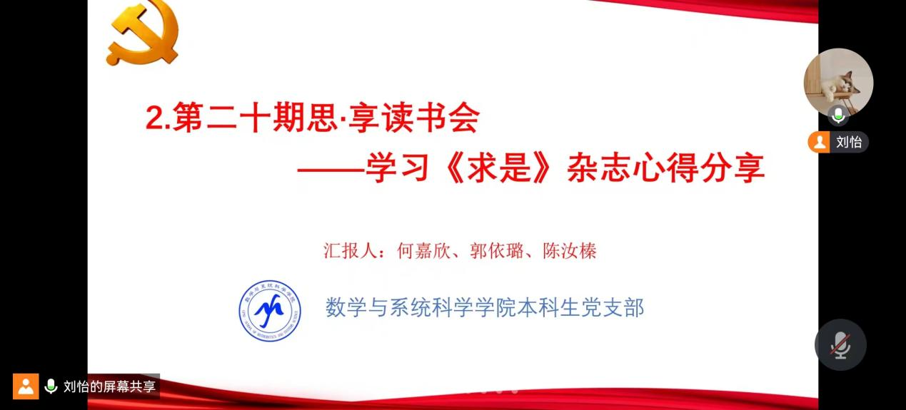 第二十期思·享读书会,全体党员集体学习杂志《求是》,员工党员何嘉欣、郭依璐、陈汝榛作为党员代表作学习心得分享。