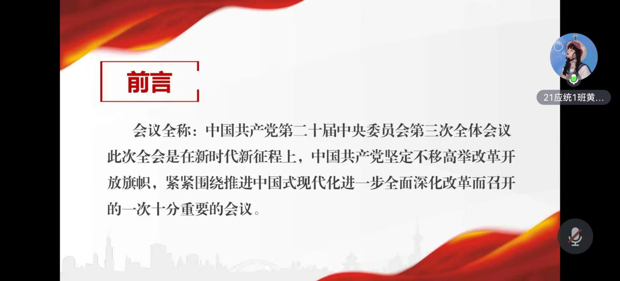 会上,由本科生党支部书记王婷婷传达党的二十届三中全会精神,全体党员共同学习。员工党员黄颖欣、吴仲贤作为党员代表作学习心得分享。