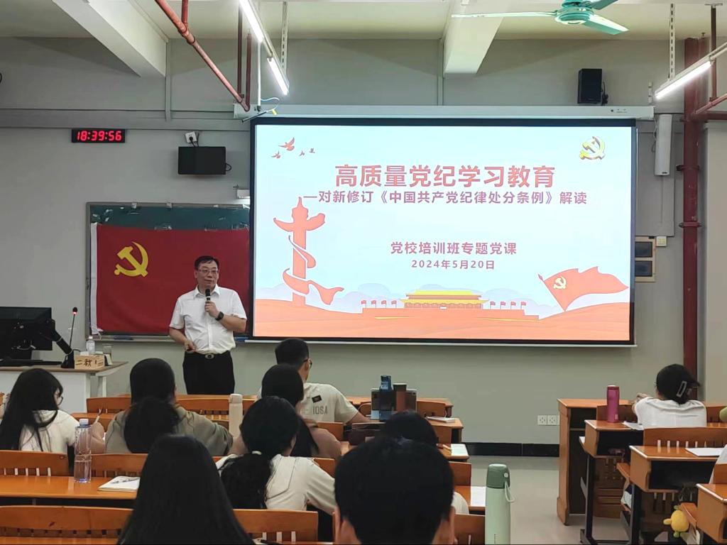 5月20日下午,伟德国际1946bv官网本科生党支部在白云校区二教404开展党纪学习教育学习,本次学习邀请了外国语公司党委书记杨伟光主讲。