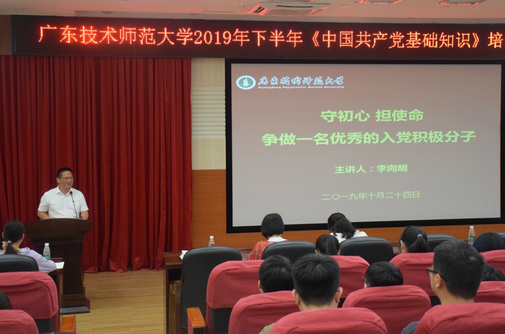 2019年10月24日下午,在白云校区三教104,公司党委副书记李向明为公司入党积极分子作了题为“守初心,担使命,争做一名优秀的积极分子”的专题党课。员工党支部书记王婷婷到现场聆听了课程。