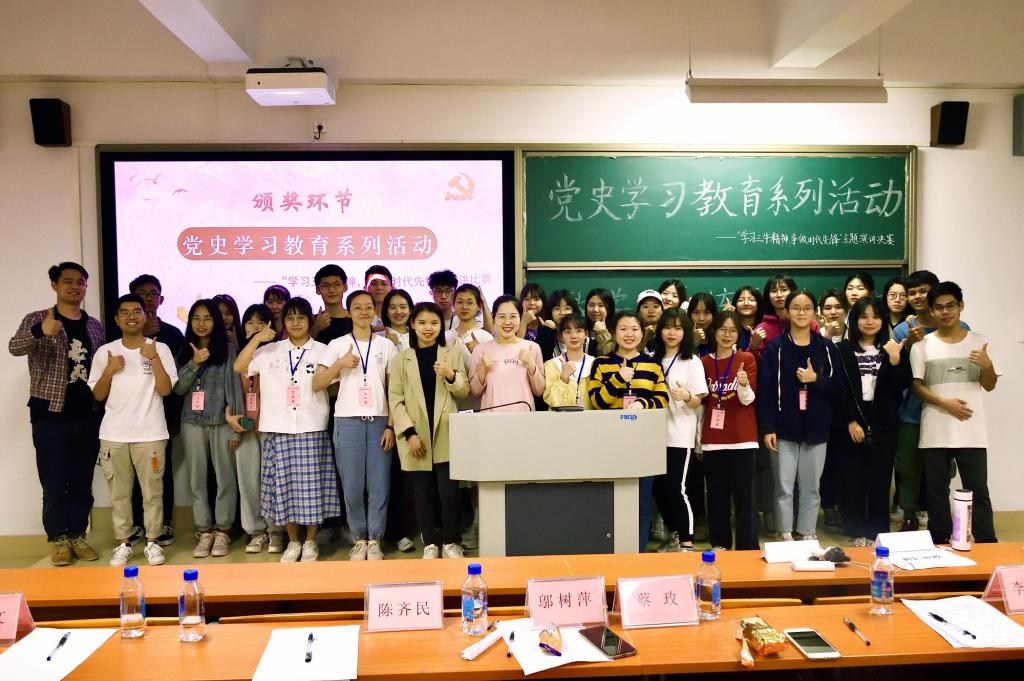 为深入推进党史学习教育,引导员工在学思践悟中成长成才;4月8日晚,公司20级员工在河源校区唯实楼217开展了党史学习教育---“学习三牛精神,争做时代先锋”主题演讲比赛。河源校区管委会蔡玫老师、邬树萍老师、文传公司谢昌文同学作为评委嘉宾出席本次比赛。