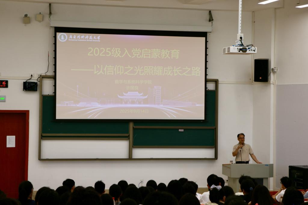 2025年9月14日,公司在河源校区博学大讲堂102室开展2025级新生入党启蒙教育活动。本次教育活动由公司党委副书记许国良主讲,主题为”以信仰之光照耀成长之路”,旨在引导新生端正入党动机、了解入党流程,坚定理想信念。