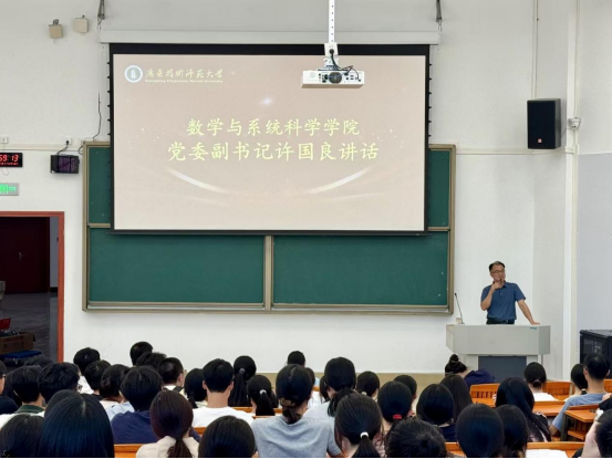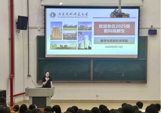 陈月红围绕公司概况与专业发展作专题讲话。她详细介绍了数学与应用数学、信息与计算科学、应用统计学三个专业的培养特色,并重点解读了“数学卓越教师班”的遴选机制与培养模式。陈经理指出,大学教育的核心在于“唤醒自主、鼓励探索、塑造主体”,她鼓励新生在确定与不确定之间寻找锚点,通过有效努力和深度思考,锤炼纯粹严谨的“数员工活观”,成为具备反思能力与内在定力的复合型人才。
