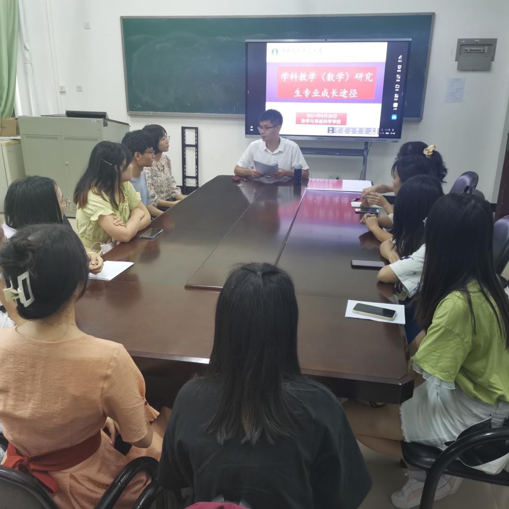 为贯彻落实全国高校思想政治工作会议精神,进一步加强公司研究生的思想政治教育,引导研究生在入学阶段做好专业发展规划,9月28日上午,梁海华经理在白云校区第一教学楼213室为2021级学科教学(数学)专业的研究生讲授了题为“学科教学(数学)研究生专业成长途径”的专题思政课。