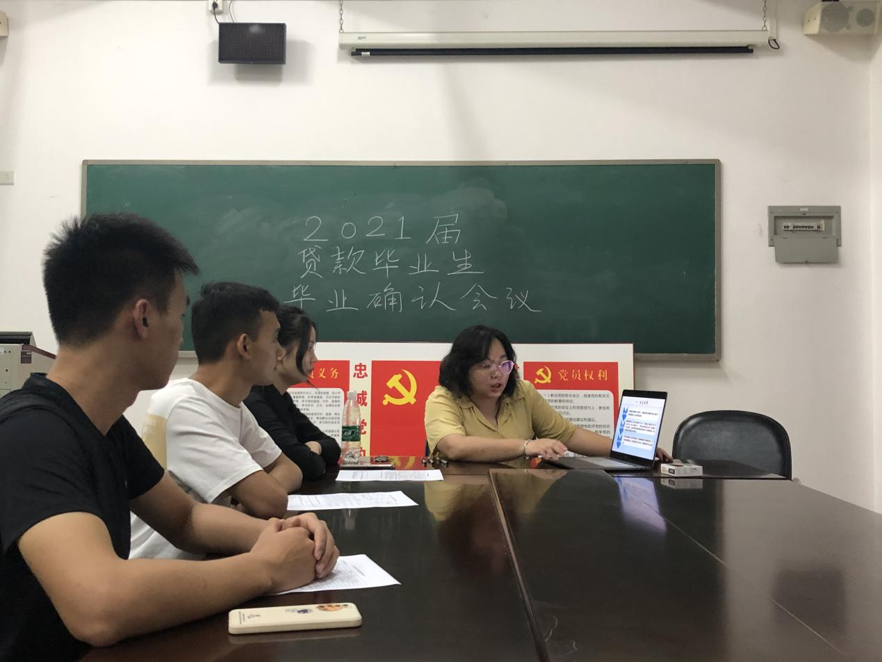 公司高度重视国家贷款毕业生的毕业确认和诚信教育工作。2021年5月20日,为贯彻落实国家有关高校贷款政策和公司相关文件精神,公司黄惠婷老师对本院3名贷款毕业生开展了诚信还款教育工作,并进行了毕业确认。会议上,黄老师宣讲了国家助学贷款政策,普及征信、金融等相关知识,还详细地介绍了还款的流程,督促员工树立诚信观念,弘扬诚实守信精神,及时履行国家助学贷款合同上的义务。