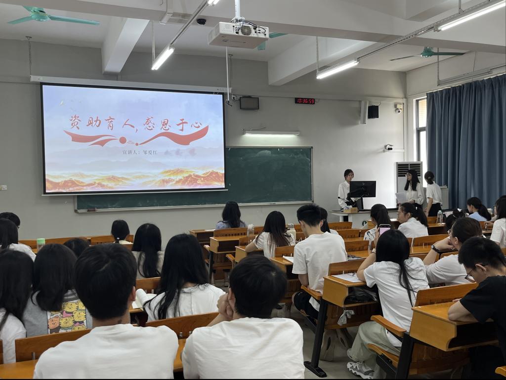 为宣传国家资助政策,增强员工的感恩意识,推动资助育人工作走深走实,2025年5月27日,公司在白云校区三教302室举行了“资助育人,感恩于心”为主题的员工资助宣传大使分享会,辅导员陈薇羽出席本次会议,2022、2023级40余名同学到场参加会议。